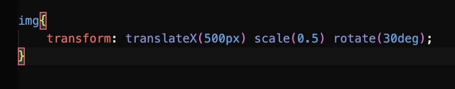 The transform property is an extremely useful tool that allows us to move, resize, rotate, and skew HTML elements on the page. It should be noted that while transforms change how the element is displayed, it is does not create ‘movement’ or animation when used by itself. The trick is to combine the transform property with a transition or keyframe animation.